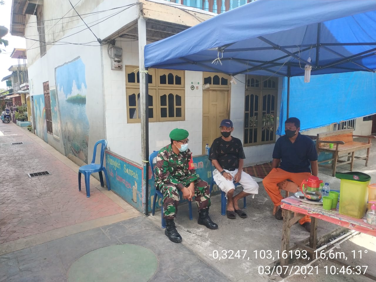 SERIBUPARITNEWS.COM, TEMBILAHAN - Babinsa Koramil 01/Tembilahan  Pelda Indra Mukri melaksanakan kegiatan komsos dengan Warga Parit 13 Lorong Melur RT 02 RW 03 Sabtu (03/07/2021)