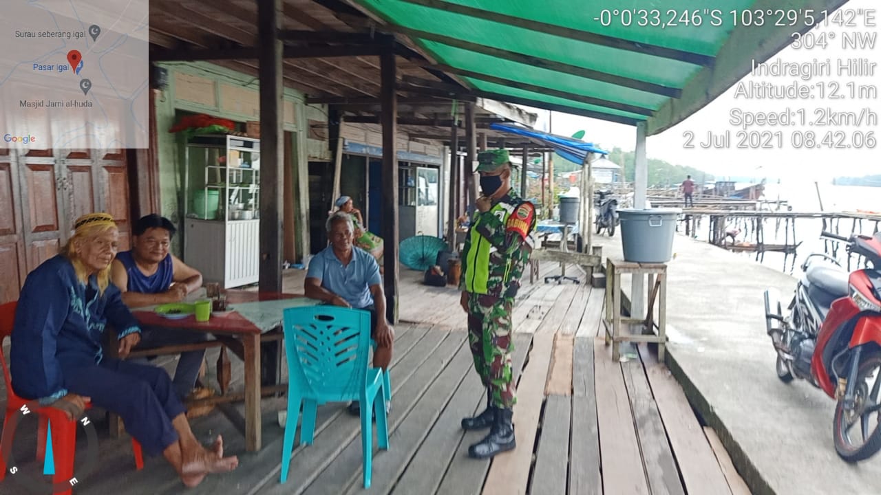 SERIBUPARITNEWS.COM, PELANGIRAN - Babinsa Koramil 08/Mandah Kodim 0314/Inhil Serka H.Situmorang melaksanakan Penegakan disiplin protokol kesehatan covid 19 kepada masyarakat Jumat (02/07/2021)