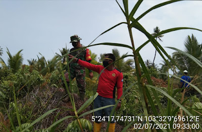 SERIBUPARITNEWS.COM, PULAUBURUNG - Di Jumat Pagi ini, Babinsa Koramil 11/Pulau Burung Serda Siswanto melaksanakan kegiatan patroli dan sosialisasi karhutla Jumat (02/07/2021)