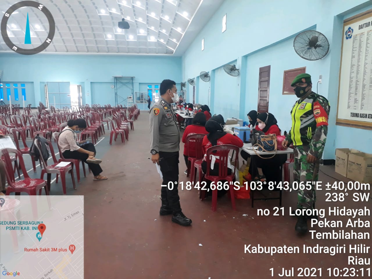 SERIBUPARITNEWS.COM, TEMBILAHAN - Sertu M.Yasin Babinsa Koramil 01/Tembilahan Mendampingi vaksinasi tahap 2(dua) untuk lansia di gedung psmti pekan arba oleh puskesmas tembilahan hulu,gajah mada,lapkesda dan tembilahan kota Kamis (01/07/2021)