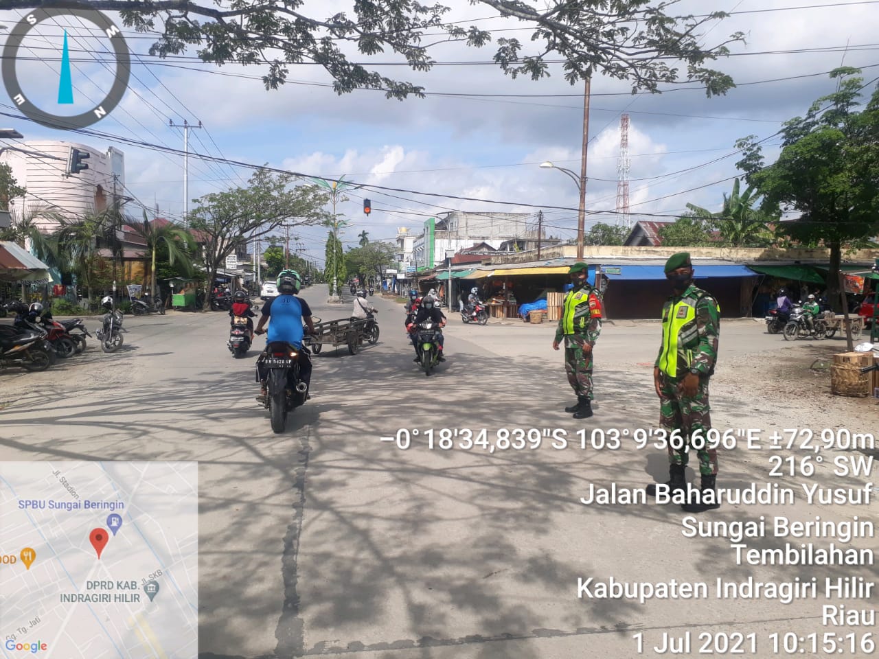 SERIBUPARITNEWS.COM, TEMBILAHAN - Masa dalam kondisi dan situasi pembatasan Mobilitas Warga, Babinsa Koramil 01/Tembilahan  Sertu Surung Simbolon terus melaksanakan Upaya Pencegahan dengan melaksanakan Pe penegakkan disiplin Kamis  (01/07/2021)