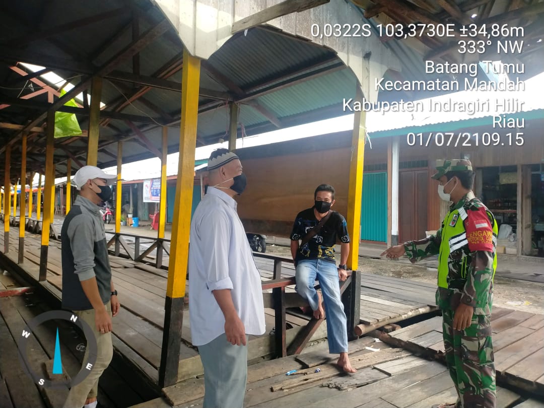 SERIBUPARITNEWS.COM,MANDAH Babinsa Koramil 08/Mandah Kodim 0314/Inhil Serda Tulus L.Gaol melaksanakan Penegakan disiplin protokol kesehatan covid bersama tim kesehatan Kamis (01/07/2021)