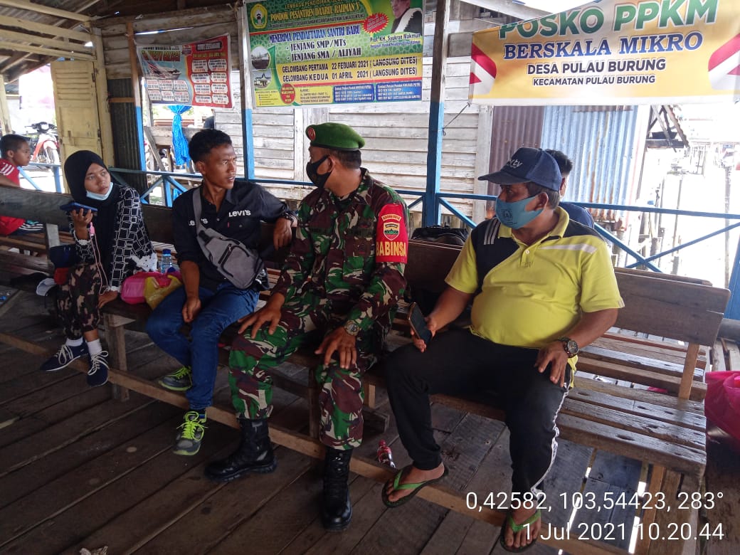 SERIBUPARITNEWS.COM, PULAU BURUNG - Guna Mendukung ketersedian transportasi air khusu di masa pandemik, Babinsa Koramil 11/Pulau Serda Supandi Jaya Melaksanakan kegiatan Komsos dengan Kepdes dan Masyarakat Membahas tentang Sarana Transportasi Air di desa Pulau Burung Kecamatan Pulau Burung Kab.Inhil Kami (01/07/2021)