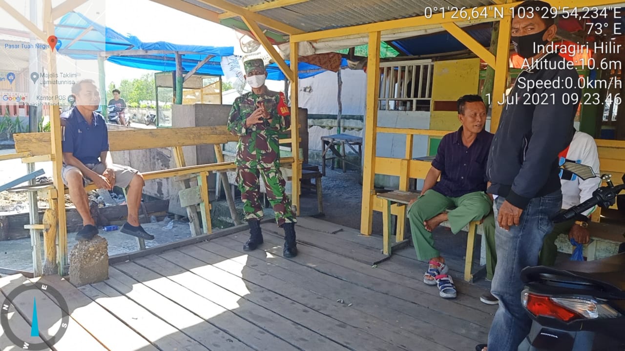 SERIBUPARITNEWS.COM,MANDAH -  Babinsa Koramil 08/Mandah Serka H.Situmorang Melaksanakan Komsos tentang peraturan kesehatan di masa pandemi covid dan suntik vaksinisasi bersama warga di warung kopi pasar Kelurahan Khairiah Mandah Kecamatan Mandah Kab Inhil Kamis (01/07/2021)