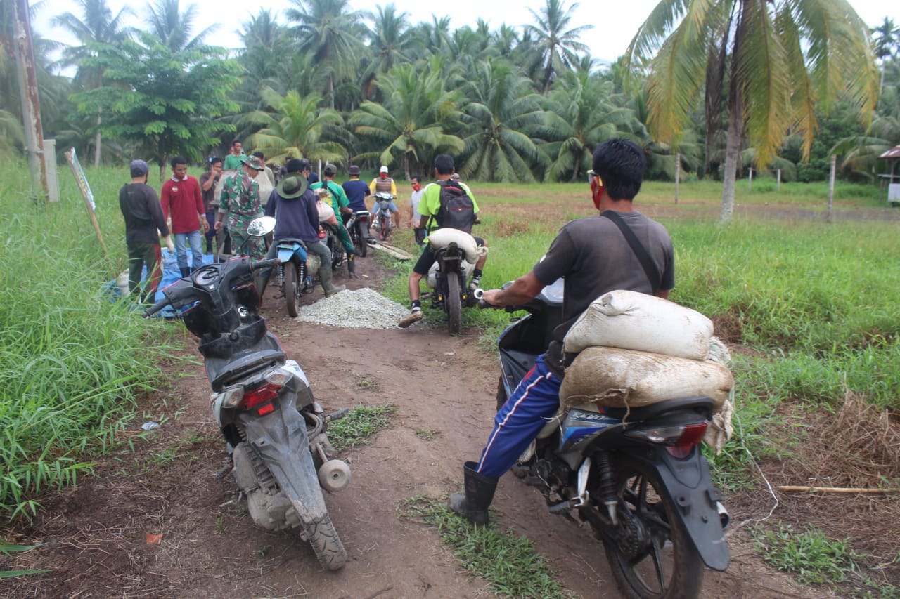 masyarakat Desa Terusan Beringin Jaya yang juga ikut bergotong royong melansir bahan material dengan menggunakan sepeda motor mengaku dirinya ikhlas