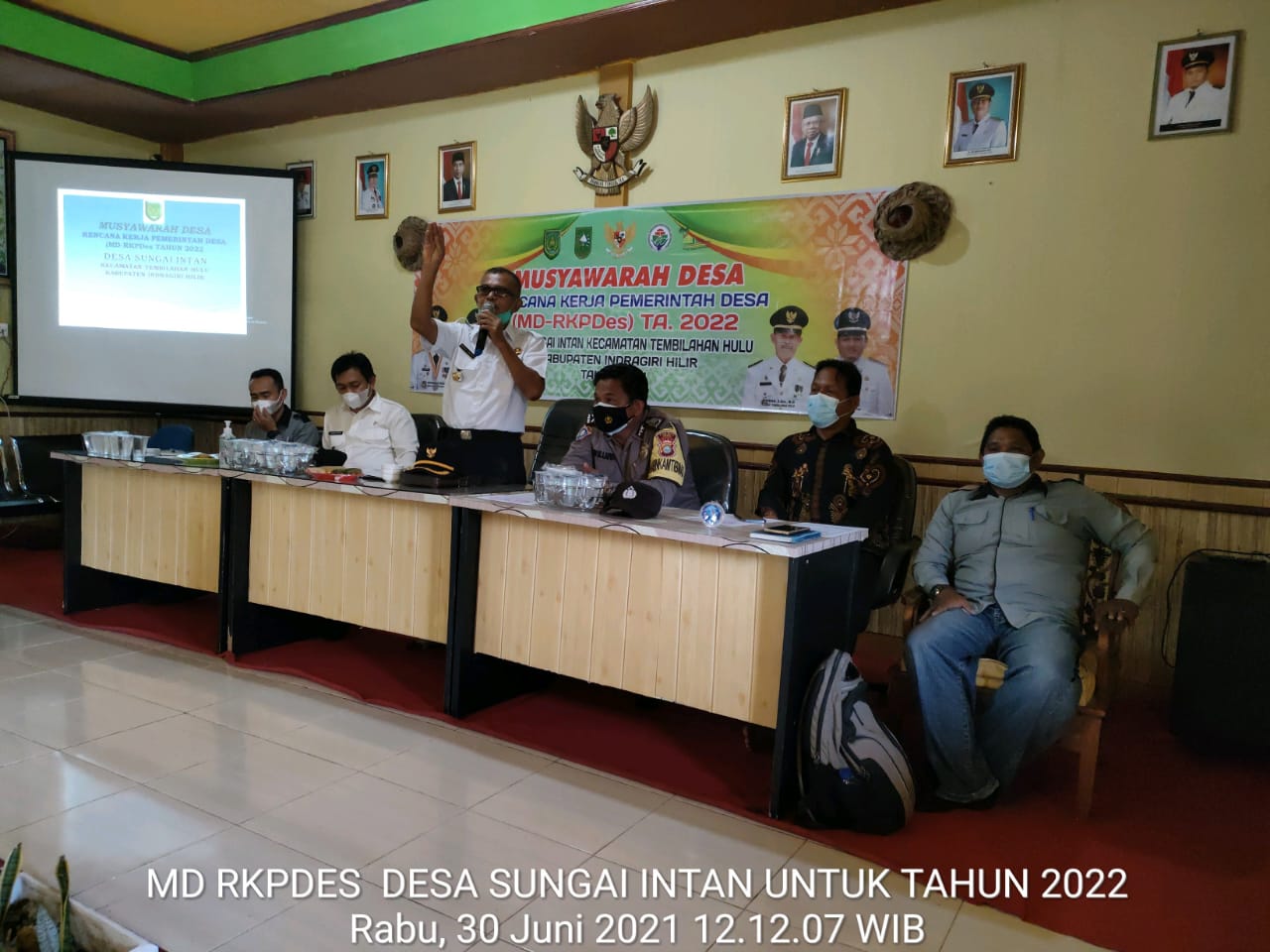 SERIBUPARITNEWS.COM, TEMBILAHANHULU - Pemerintahan Desa Sungai Intan  Kecamatan Tembilahan Hulu melaksanakan MD RKPDes tahun 2022 Rabu (30/6/2021) dilaksanakan di aula kantor Desa Sungai Intan dibuka secara langsung oleh Camat Tembilahan Hulu Ridwan S.Sos. M.S.I