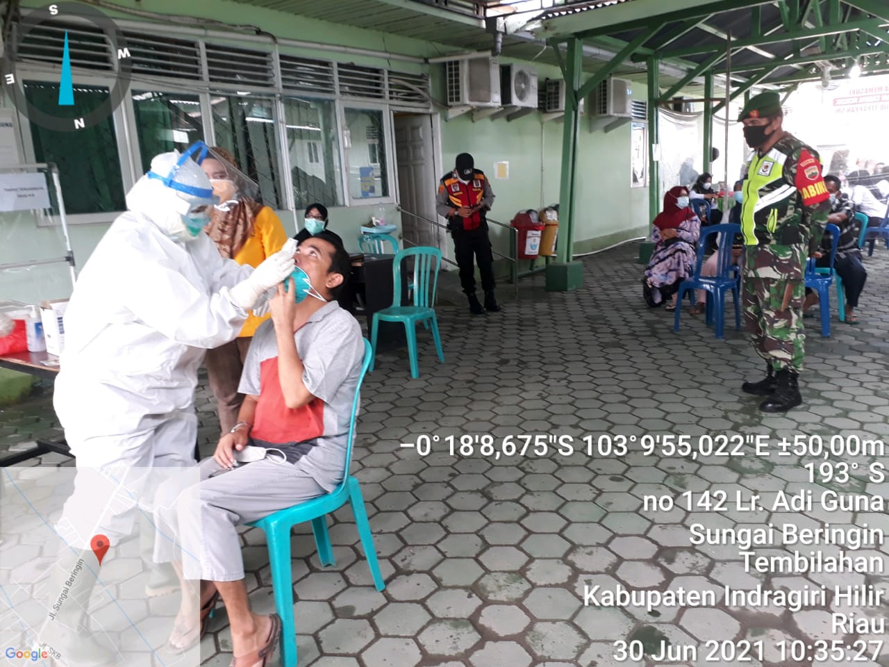 SERIBUPARITNEWS.COM, TEMBILAHAN - Guna memutus mata rantai penyebaran Covid -19, Sertu Surung Simbolon Babinsa Koramil 01/Tembilahan bersama Tim melaksaanakan tes swab terhadap keluarga Almarhum pasien Covid -19 Rabu (30/06/2021)