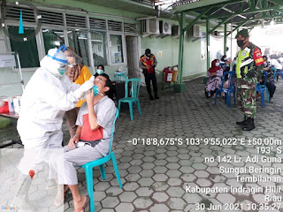 SERIBUPARITNEWS.COM, TEMBILAHAN - Guna memutus mata rantai penyebaran Covid -19, Sertu Surung Simbolon Babinsa Koramil 01/Tembilahan  bersama Tim melaksaanakan tes swab terhadap keluarga Almarhum pasien Covid -19 Rabu (30/06/2021)