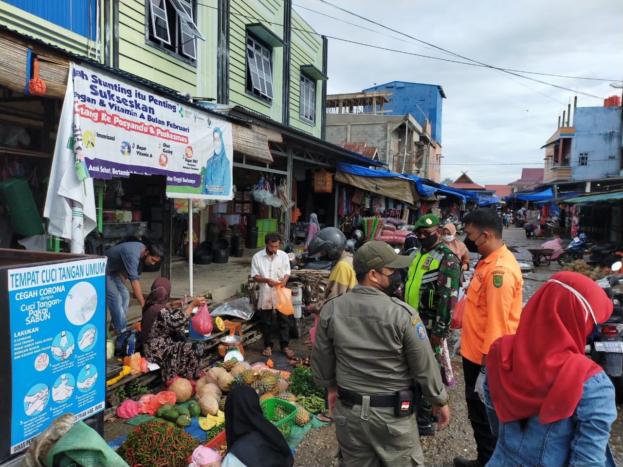 Pengawasan pemakaian masker terhadap pengunjung pasar dan para Pedagang,dan memberikan himbauan untuk selalu menjaga kebersihan dan selalu mencuci tangan.