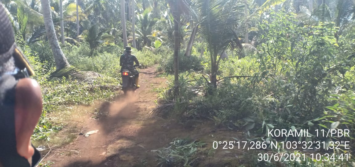 SERIBUPARITNEWS.COM, PULAUBURUNG - Babinsa Koramil 11/Pulau Burung  dipimpin oleh Sertu Yanuarsyah melaksanakan patroli Karhutla terorganisir Rabu (30/06/2021)