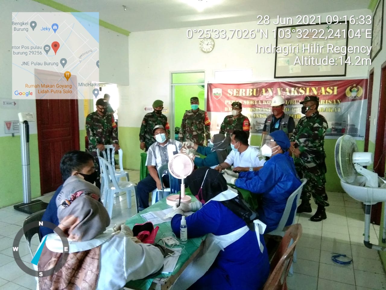Seperti hari ini, Danramil 11/Pulau Burung Letda Inf.Agusturahim memimpin Vaksinasi di UPT Puskesmas Pulau Burung Senin (28/06/2021)