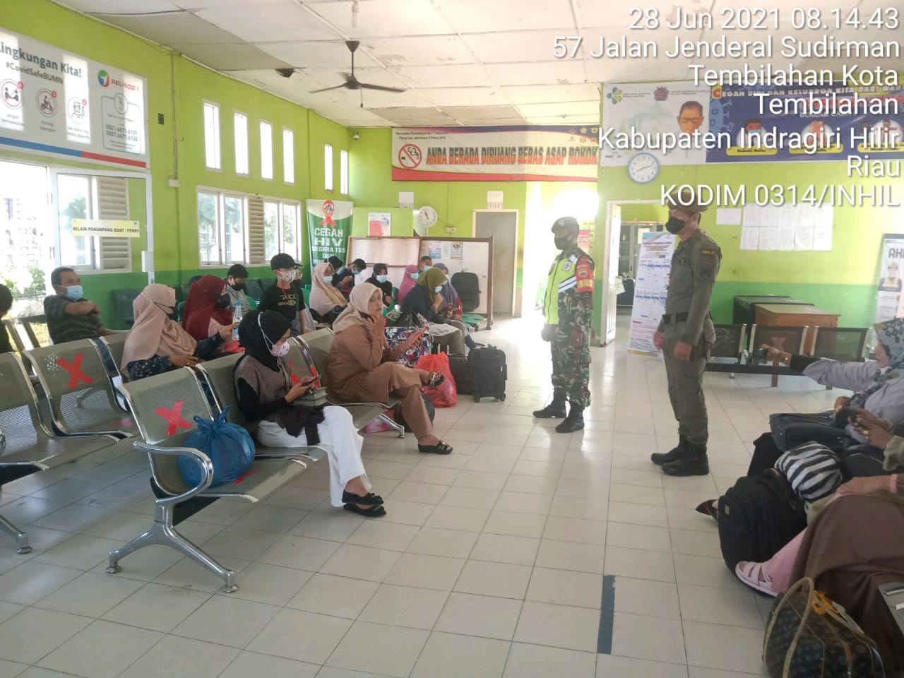 SERIBUPARITNEWS.COM, TEMBILAHAN - Pelda Jaharzam Babinsa Koramil 01/Tembilahan Bersama Tim Melaksanakan pengecekan Rapit test bagi penumpang yg akan diberangkatkan melalui Kapal Rahmat Jaya 08 dari Tembilahan Pelabuhan Pelindo menuju Pelabuhan Batam Senin (28/06/2021)