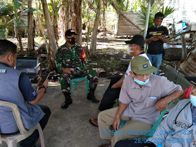 SERIBUPARITNEWS.COM, PULAUBURUNG - Di sudut Tempat BRI Link ,Babinsa Koramil 11/Pulau Burung Kodim 0314/Inhil Serda Siswanto dan warga melaksanakan diskusi ringan di pagi hari Senin (28/06/2021)