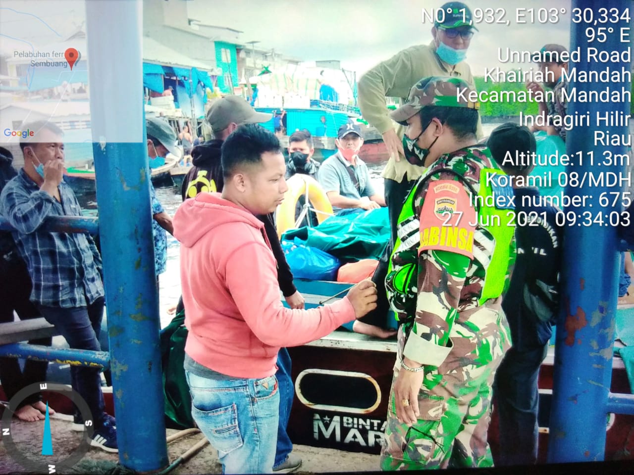 SERIBUPARITNEWS.COM, MANDAH - Babinsa Koramil 08/Mandah Kodim 0314/Inhil Sertu Haris Moni melaksanakan kegiatan Penegakkan  Disiplin di Pelabuhan Sembuang  Minggu   (27/06/2021)