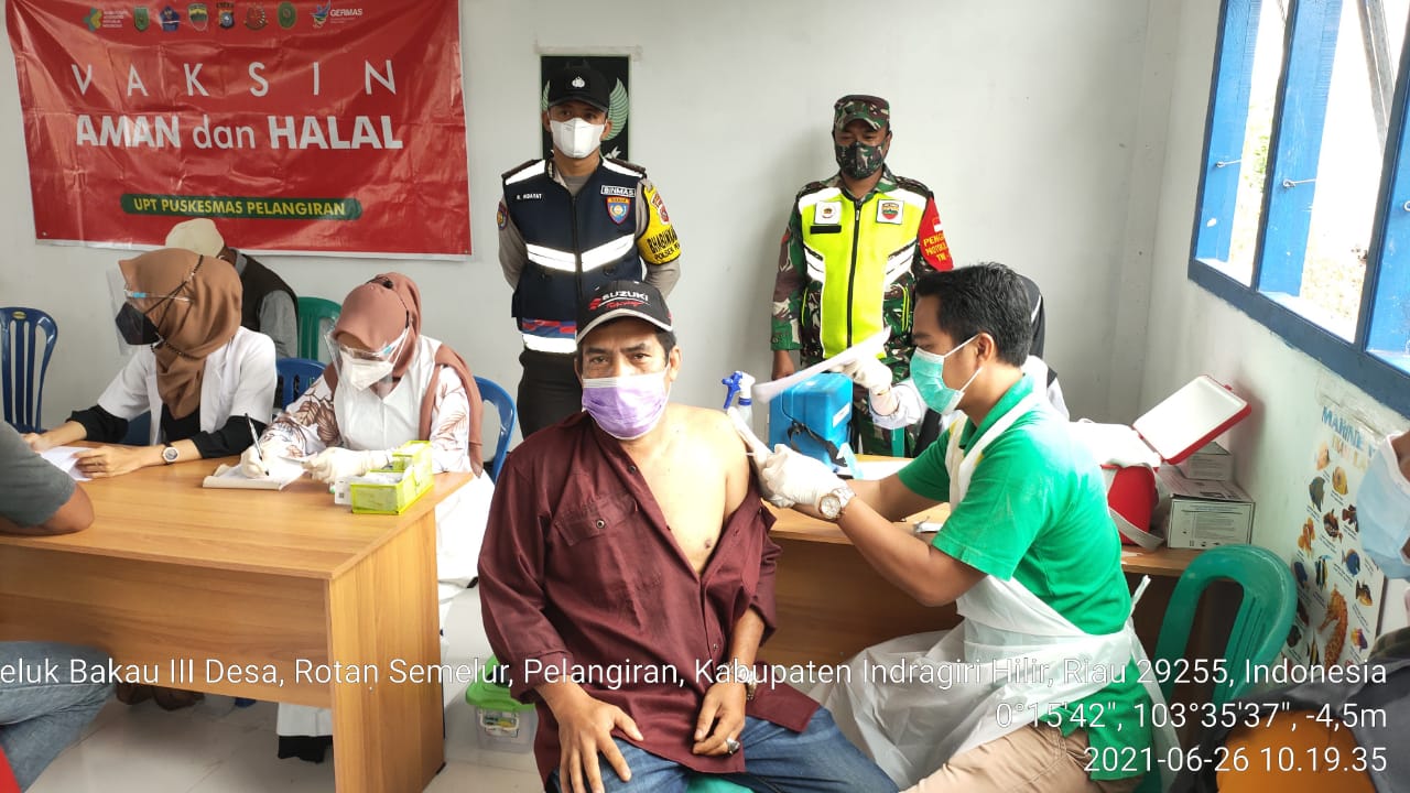 SERIBUPARITNEWS.COM,PELAGIRAN - Koptu Chandra bastian Babinsa desa rotan semelur koramil 10/Pelangiran Kodim 0314/Inhil Melaksanakan Pendampingan pengamanan vaksin Sabtu (26/06/2021)