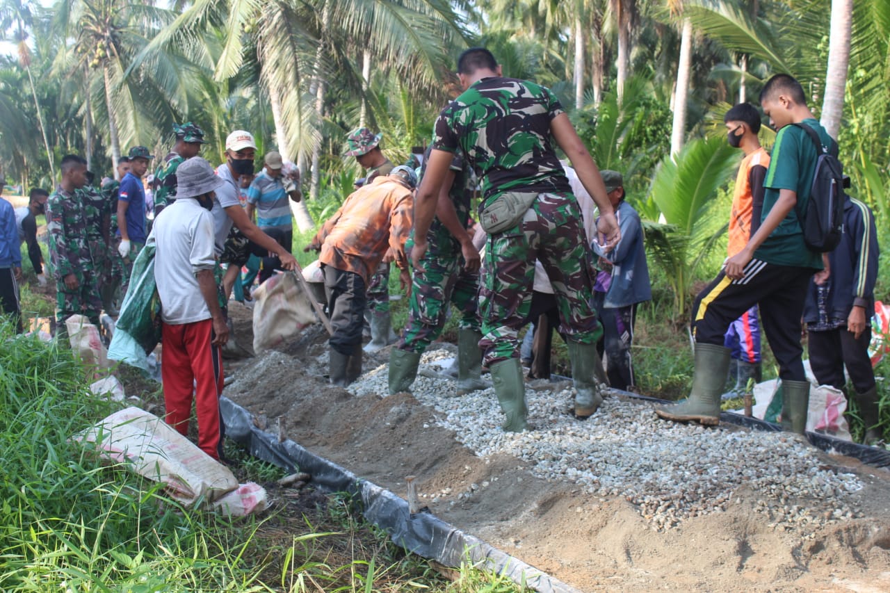 SERIBUPARITNEWS.COM,Indragiri Hilir, - Setelah hari kemarin sempat tertunda dalam proses pengerjaan sasaran fisik di jalan Yakub 2 yang merupakan jalan penghubung antara Desa Teluk Binian dengan Kecamatan, hari ini Satgas TMMD ke 111 Kodim 0314/lnhil mulai mengerjakan kembali sasaran fisik TMMD tersebut. Sabtu (26/06/2021).