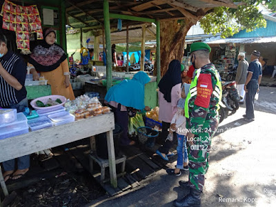 Koptu Adlis Babinsa Koramil 08/Mandah Kodim 0314/Inhil Awasi Penerapan Protokes Bagi Pedagang Kaki Lima dan Warga