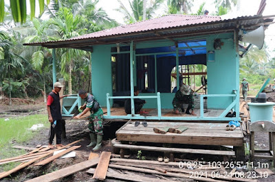 Koptu Candra Bastian Babinsa Koramil 10/Pelangiran Melanjutkan Perehapan Musholla di Lokasi TMMD Ke -111