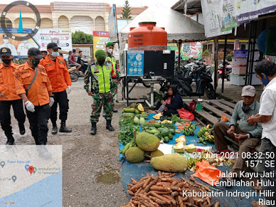 SERIBUPARITNEWS.COM, TEMBILAHAN - Pelda Jaharzam Babinsa Koramil 01/Tembilahan Kodim 0314/Inhil melanjutkan penegakkan disiplin protokol kesehatan di Pasar kayu Jati Kecamatan Tembilahan Hulu Kamis  (24/06/2021)