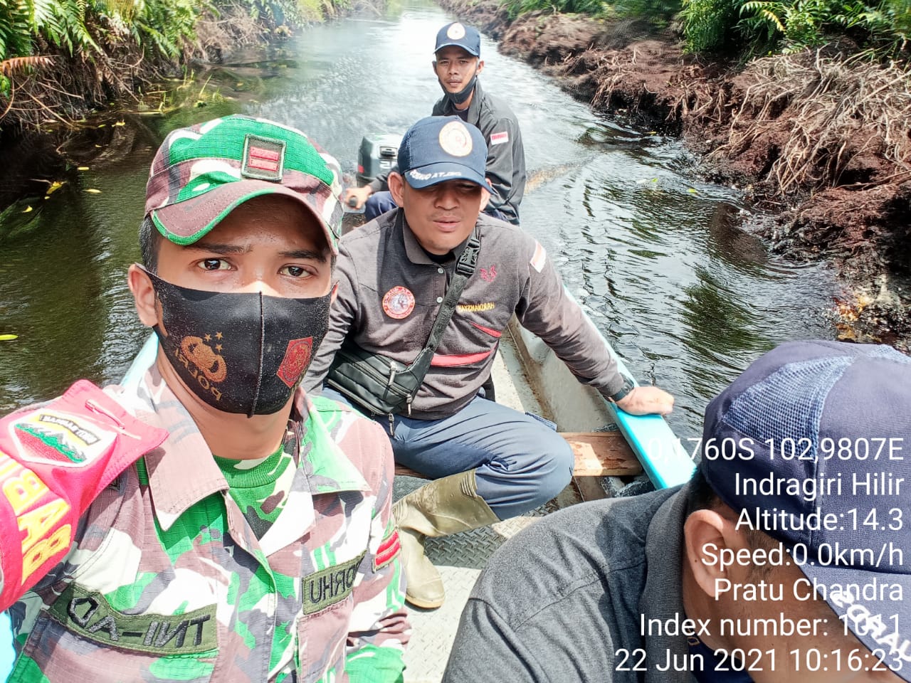 Bersama security PT. BDL menyisiri pinggiran sungai gaung di Desa Rambayan Kecamatan Gas, Kab Inhil