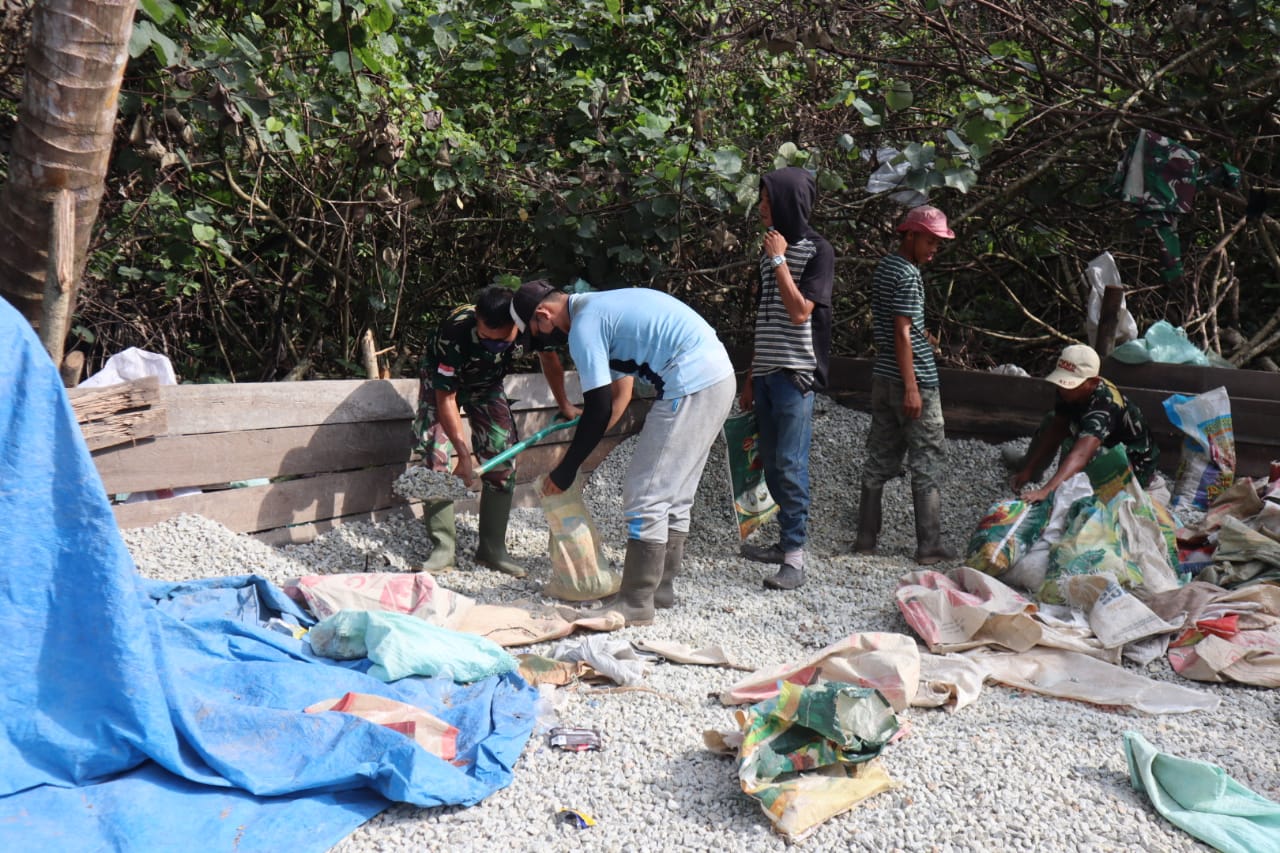 "Mereka bahkan memanfaatkan karung-karung bekas pupuk yang sudah tidak terpakai sebagai alat memindahkan pasir dan batu dari tempat penumpukan material ke lokasi sasaran TMMD," jelasnya.