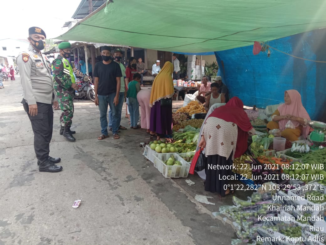 SERIBUPARITNEWS.COM, MANDAH - di Pagi hari ini  Babinsa Koramil 08/Mandah Kodim 0314/Inhil  Koptu Adlis bersama Anggota Polsek Mandah melaksanakan Penegakan disiplin protokol kesehatan covid Selasa (22/06/2021)