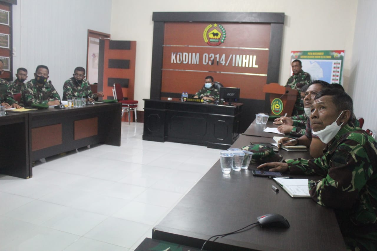 Pada kesempatan rapat ini Pasi Ops Kodim 0314/lnhil, Kapten lnf Tarmizi memberikan paparan kepada para Danramil dengan menyampaikan grafik rekapitulasi Covid 19 di wilayah Inhil, perkembangan pandemi Covid 19 dari mulai tingkat dunia dan Nasional. Perkembangan pandemi Covid 19 Inhil, alur proses implementasi PPKM Mikro dan pembentukan Posko, Kriteria Zonasi dalam PPKM Mikro dan tentang Pembentukan posko PPKM Mikro di tingkat Desa, Kelurahan, RW sampai tingkat RT.