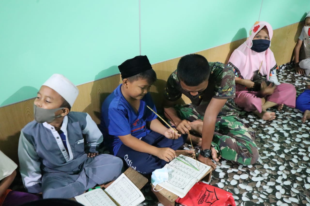 Setiap malam sejumlah anggota Satgas TMMD ke-111 yang bertugas Mengajarkan Anak Mengaji