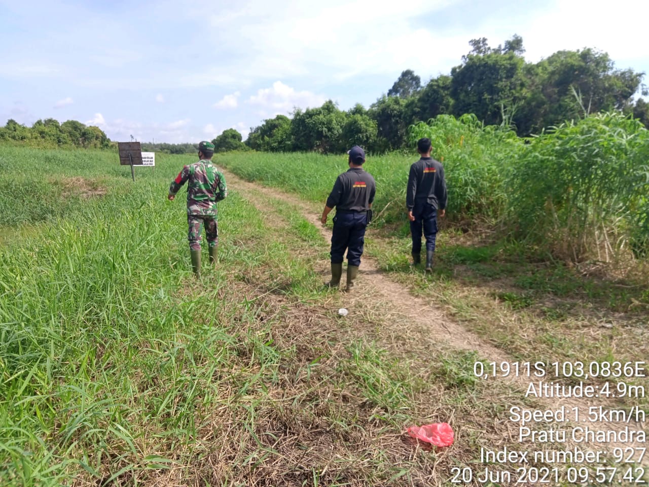 SERIBUPARITNEWS.COM,GAUNG ANAK SERKA - Babinsa Koramil 05/Gas Pratu Candra Winata melaksanakan Patroli Agresip karhutla minggu (20/06/2021)