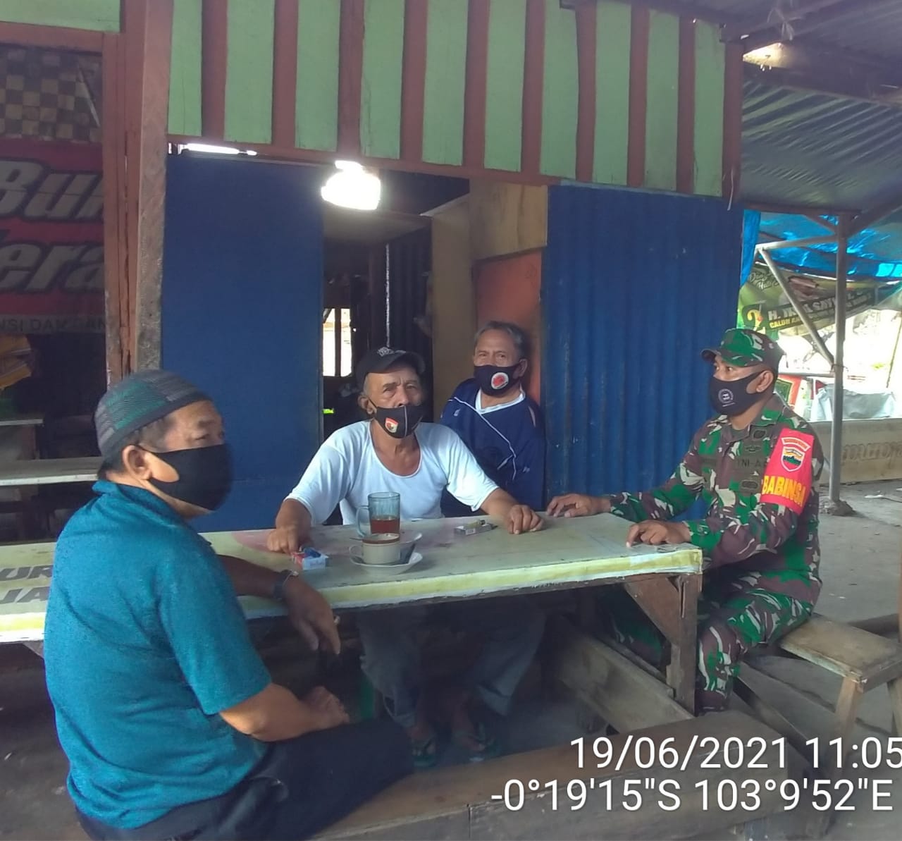 SERIBUPARITNEWS.COM, TEMBILAHAN - Babinsa Kelurahan Sungai Perak Koramil 01/Tembilahan Kodim 0314/Inhil  Kopda Kamarudin  melaksanakan Komsos bersama  RT 05 Bapak  Hj.Ramli dengan pemilik Warung Bapak Yuspik Sabtu (19/06/2021)