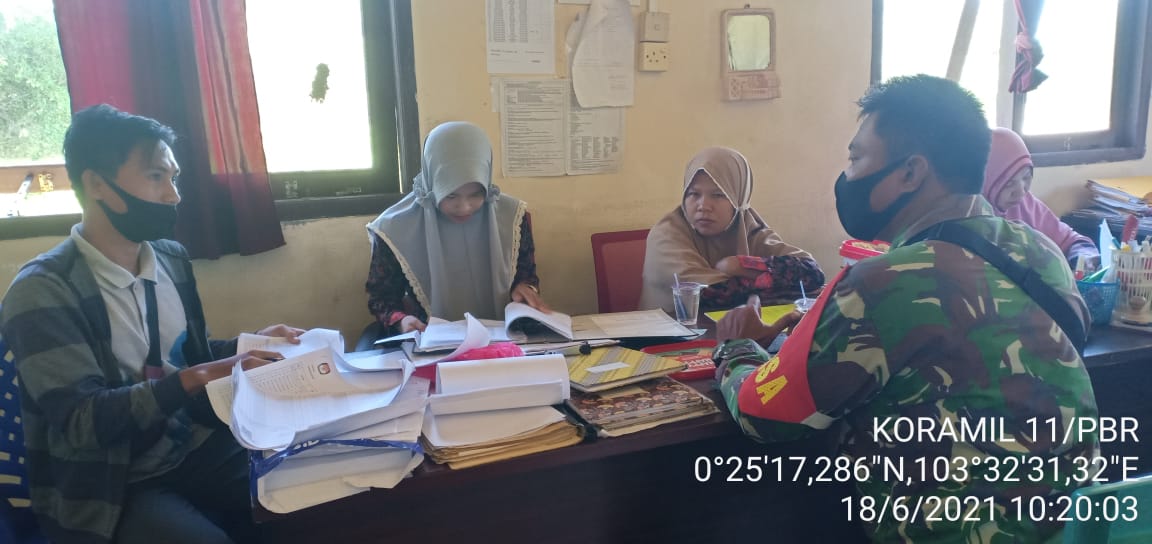 SERIBUPARITNEWS.COM, PULAUBURUNG - Babinsa Koramil 11/Pulau Burung Kodim 0314/Inhol  Sertu Arif Darmawan  melaksanakan koordinasi bersama Staf Desa Jumat (18/06/2021)