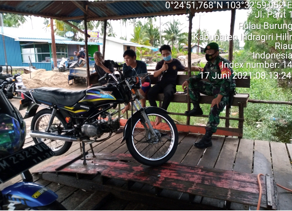 SERIBUPARITNEWS.COM, PULAUBURUNG - Babinsa Koramil 11/Pulau Burung Kodim 0314/Inhil Praka Dedi Hariyawan Melaksanakan Komsos Bersama Warga Kamis (17/06/2021)