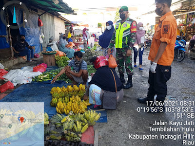 SERIBUPARITNEWS.COM, TEMBILAHANHULU - Kopda Komarudin Babinsa Koramil 01/Tembilahan Bersama Satpol PP Inhil Melaksanakan Penegakkan Disiplin Protokol Kesehatan Kamis (17/06/2021)