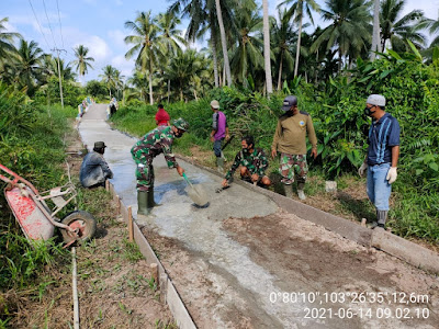 Gotong royong yang dilaksanakan melanjutkan pengerjaan fisik semenisasi jalan yang di gesa di Desa Terusan beringin jaya  Kecamatan Pelangiran ,Kab.Inhil