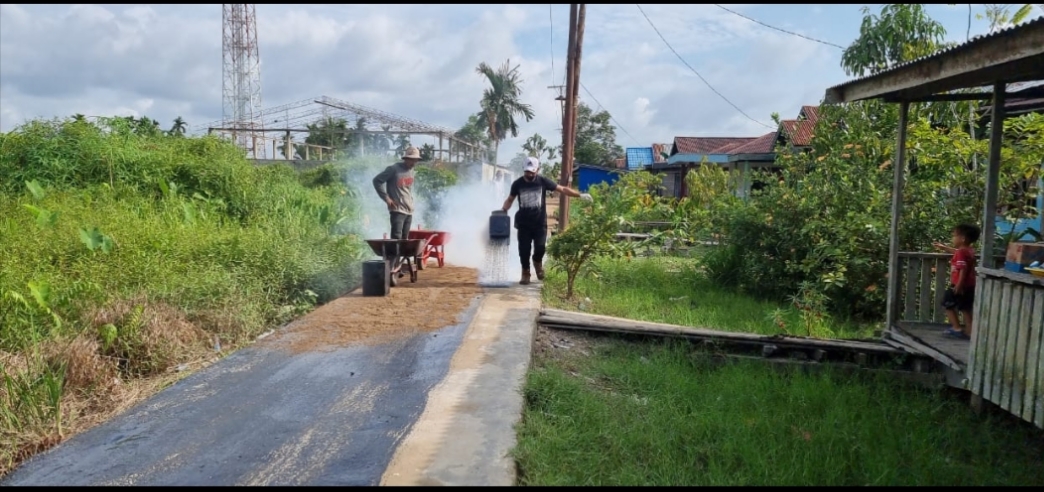 Di Hari minggu ini  bersama warganya. Melaksanakan Pengaspalan Jalan Lingkungan Desanya yang telah disemenisasi beberapa waktu yang lalu (13/06/2021)