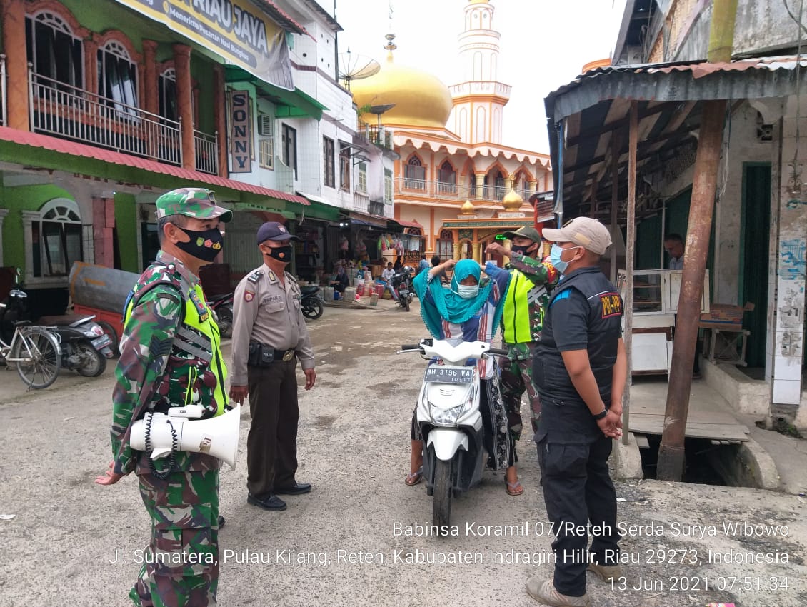 SERIBUPARITNEWS.COM,Pulau Kijang," – Pelaksanaan sosialisasi ke warga yang mau berpergian malalui Boat menerangkan untuk mengikuti peraturan protokol kesehatan sebagai salah satu upaya untuk memutus rantai penyebaran Covid-19 secara rutin dan terus menerus dilaksanakan para Babinsa Koramil 07/Reteh Kodim 0314/Inhil bersama Anggota Polsek Reteh Aiptu Erpan S dan Satpol PP Joni Iskandar dan Yudi Kurniawan di  Kecamatan Reteh.Minggu 13/06/2021