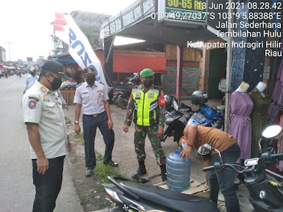 SERIBUPARITNEWS.COM, TEMBILAHAN - Kopda Komarudin Babinsa Koramil 01/Tembilahan Kodim 0314/Inhil Kembali Melaksanakan  kegiatan Penegakan Disiplin Protkes dan penyekatan mobilitas Masyarakat di wilayah Kota Tembilahan Minggu (13/06/2021)