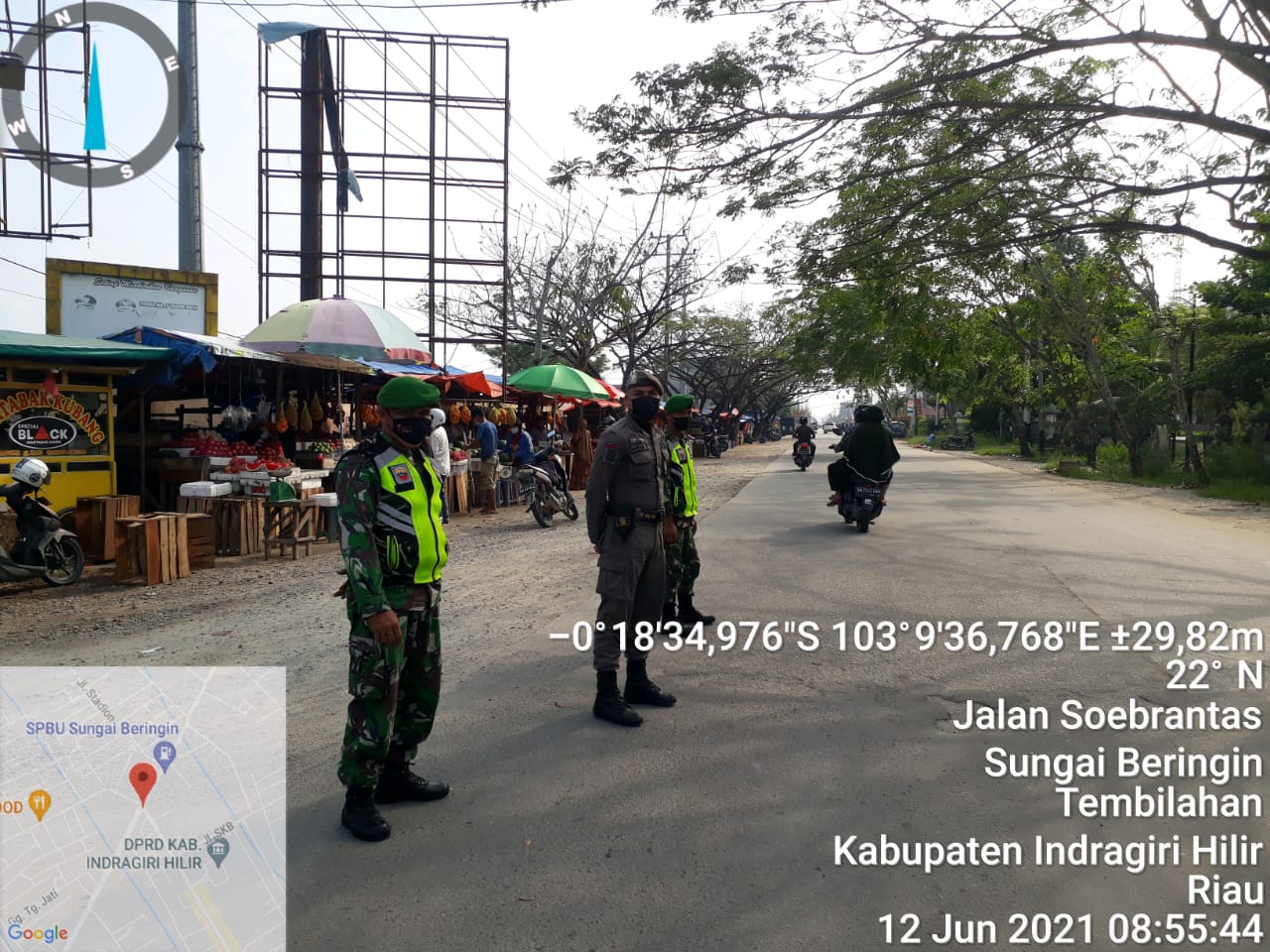 Dalam penegakkan disiplin hari ini Babinsa dibantu satpol PP Indragiri Hilir di fokuskan di Simpang Beringin Kecamatan Tembilahan