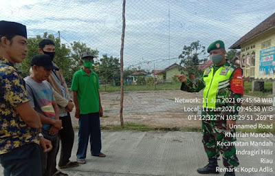 SERIBUPARITNEWS.COM,MANDAH - Di Jumat pagi yang ceria ini Babinsa Koramil 08/Mandah Kodim 0314/Inhil Koptu Adlis melaksanakan penegakan disiplin protokol kesehatan Covid (11/06/2021)