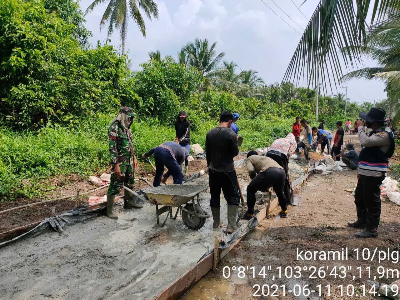 Pemusatan pengerjaan fisik semenisasi jalan di Desa Terusan beringin jaya Kecamatan Pelangiran ,Kab.Inhil