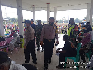 SERIBUPARITNEWS.COM, PULAUBURUNG - Danramil 11/Pulau Burung Kodim 0314/Inhil Letda Inf Agusturahim beserta anggota Babinsa, Kapolsek (AKP Sabarudin) beserta Babinkamtibmas dan Sekcam(Bapak Sugito) Pulau Burung melaksanakan peninjauan vaksinasi Sinovak Kamis (10/06/2021)