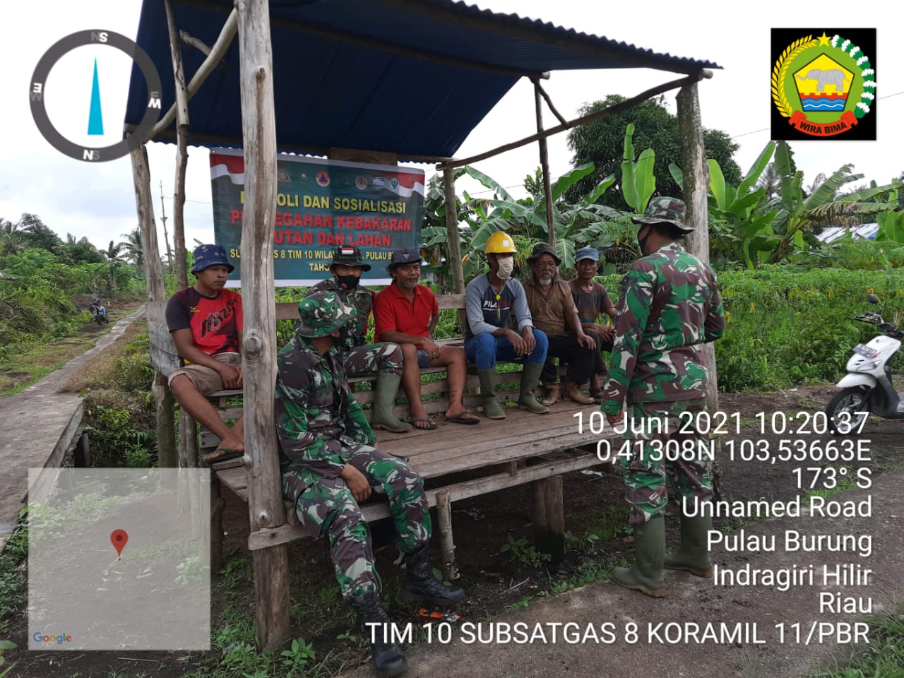 Babinsa dan personil Koramil 11/Pulau Burung  bersinergi dalam mewujudkan desa pulau burung  bebas api dan karhutlah