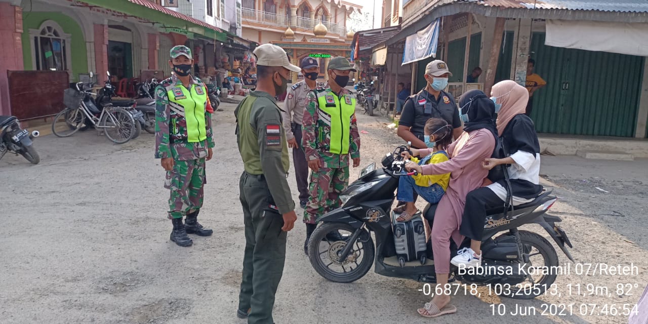 SERIBUPARITNEWS.COM,Pulau Kijang," – Babinsa Koramil 07/Reteh melakukan Operasi Penegakan Disiplin Protokol Kesehatan Covid-19 dalam pencegahan penyebaran virus corona,Kamis  (10/06/2021).