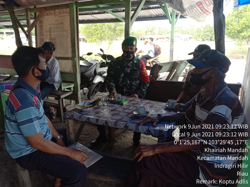 Babinsa Koramil 08/Mandah Koptu Adlis melaksanakan komsos dengan warga di sekitar warung dan kedai Kopi Rabu (09/06/2021)