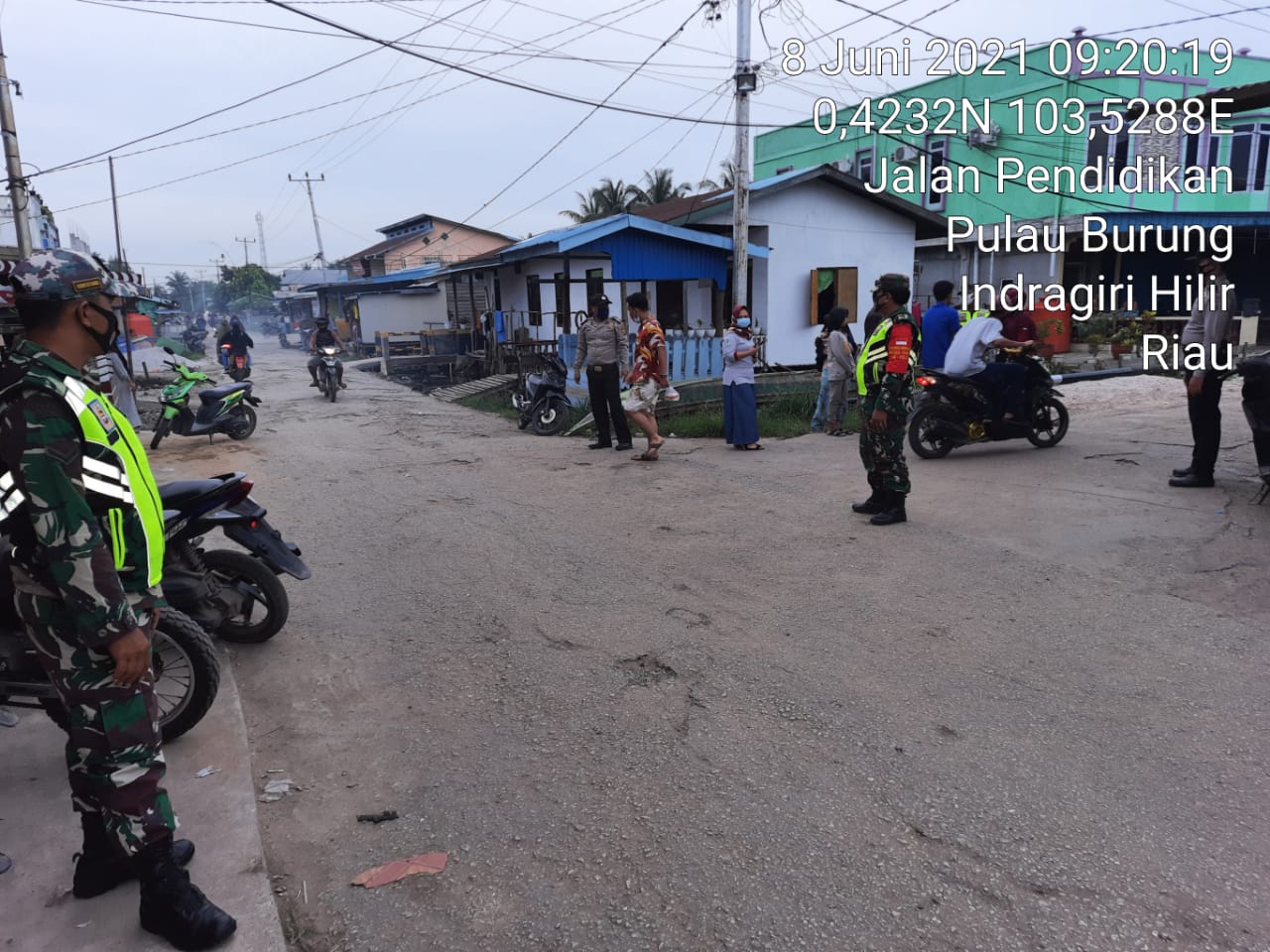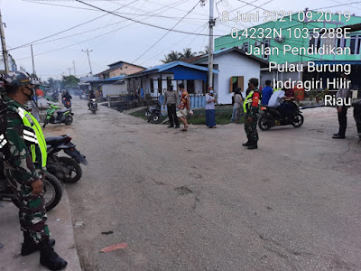 SERIBUPARITNEWS.COM, PULAUBURUNG - Babinsa Koramil 11/Pulau Burung Kodim 0314/Inhil Sertu Yanuarsyah Melaksanakan Penegakkan disiplin bersama Tim Gugus Selasa (08/06/2021)