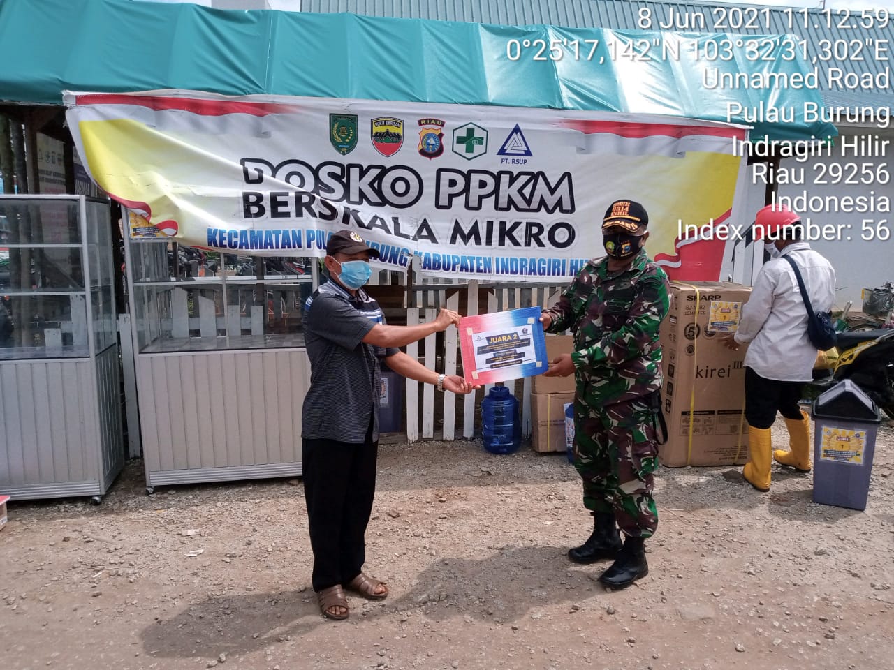 Danramil 11/Pulau Burung Kodim 0314/Inhil Letda Inf.Agusturahim Serahkan Hadiah Pemenang Lomba Kepatuhan Protokes Kepada Pelaku Usaha