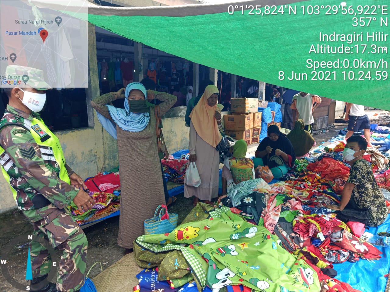 Seperti hari ini  Babinsa Koramil 08/Mandah Kodim 0314/Inhil Serka H.Situmorang melaksanakan penegakan disiplin protokol Kesehatan Covid Selasa (08/06/2021)