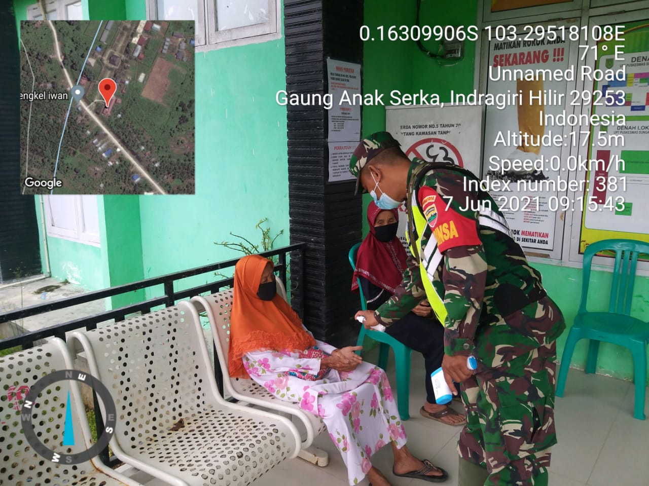 Serka Nawawi Babinsa Koramil 05/Gas Kodim 0314/Inhil Melaksanakan Pendampingan Lanjutan Vaksinasi