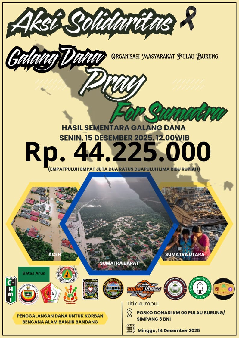 Kegiatan kemanusiaan ini merupakan wujud kepedulian dan solidaritas masyarakat Pulau Burung terhadap saudara-saudara di wilayah lain yang tengah membutuhkan bantuan. Kapolsek Pulau Burung hadir bersama unsur Forkopimcam, tokoh masyarakat, organisasi kepemudaan, serta puluhan warga yang turut serta mendukung jalannya pengiriman bantuan.