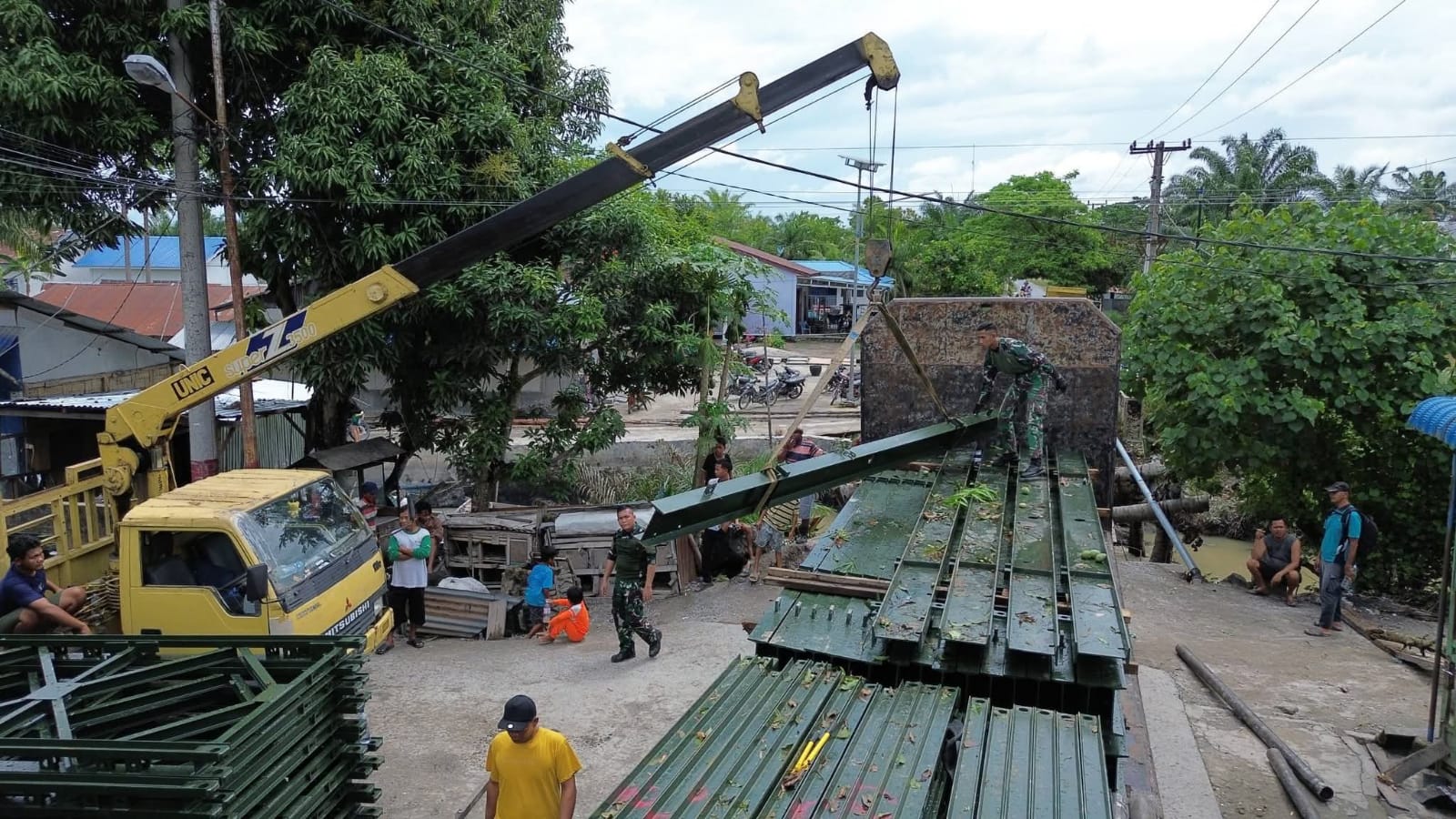Material konstruksi jembatan mulai diturunkan untuk mendukung konektivitas ekonomi serta mobilitas harian masyarakat setempat secara efisien. Kegiatan ini berlangsung di Kecamatan Medang Deras, Kabupaten Batu Bara, Senin (16/02/2026).